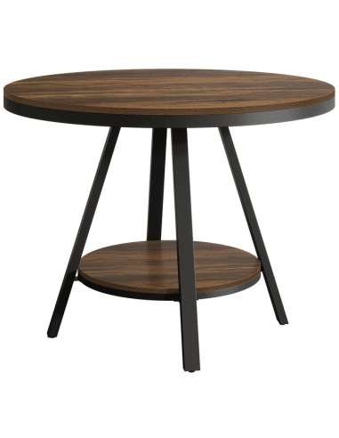 Rundt spisebord udført i et design af sortlakeret metal og brun møbelplade. Bordet m